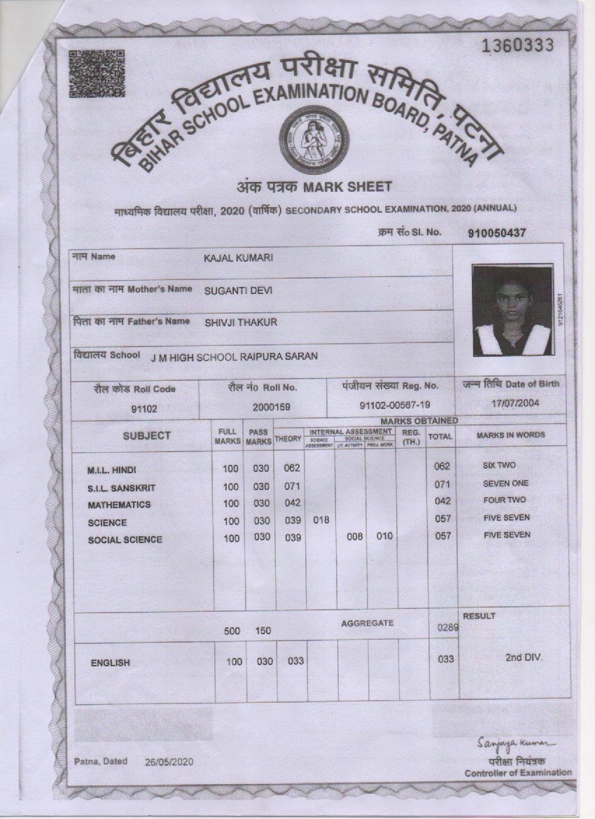 | Exam | Full Marks | Pass Marks | Marks Obtained |