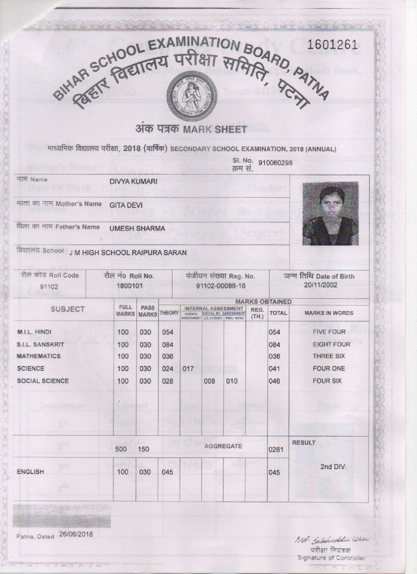 | Exam | Full Marks | Pass Marks | Marks Obtained |