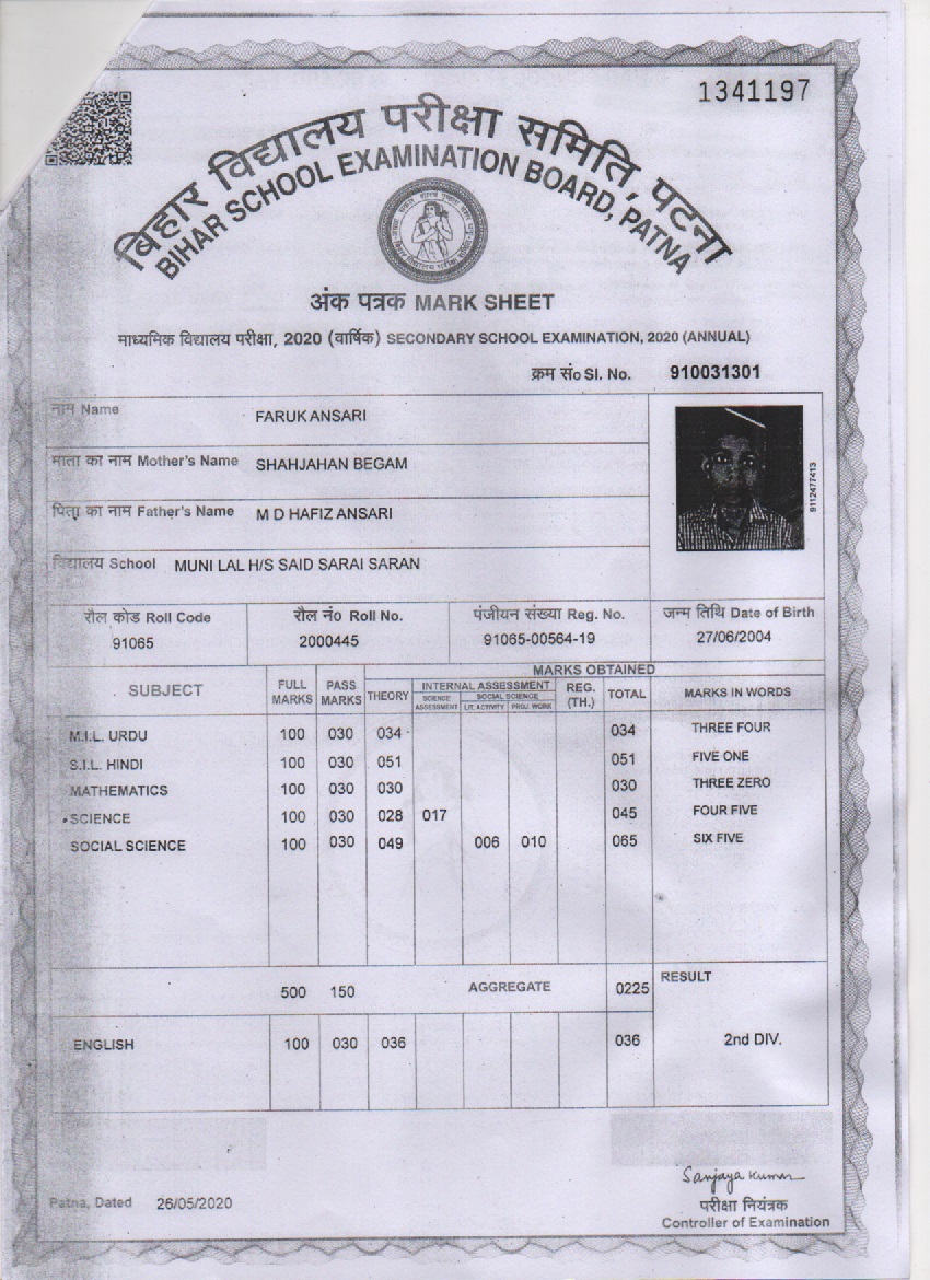 | Exam | Full Marks | Pass Marks | Marks Obtained |