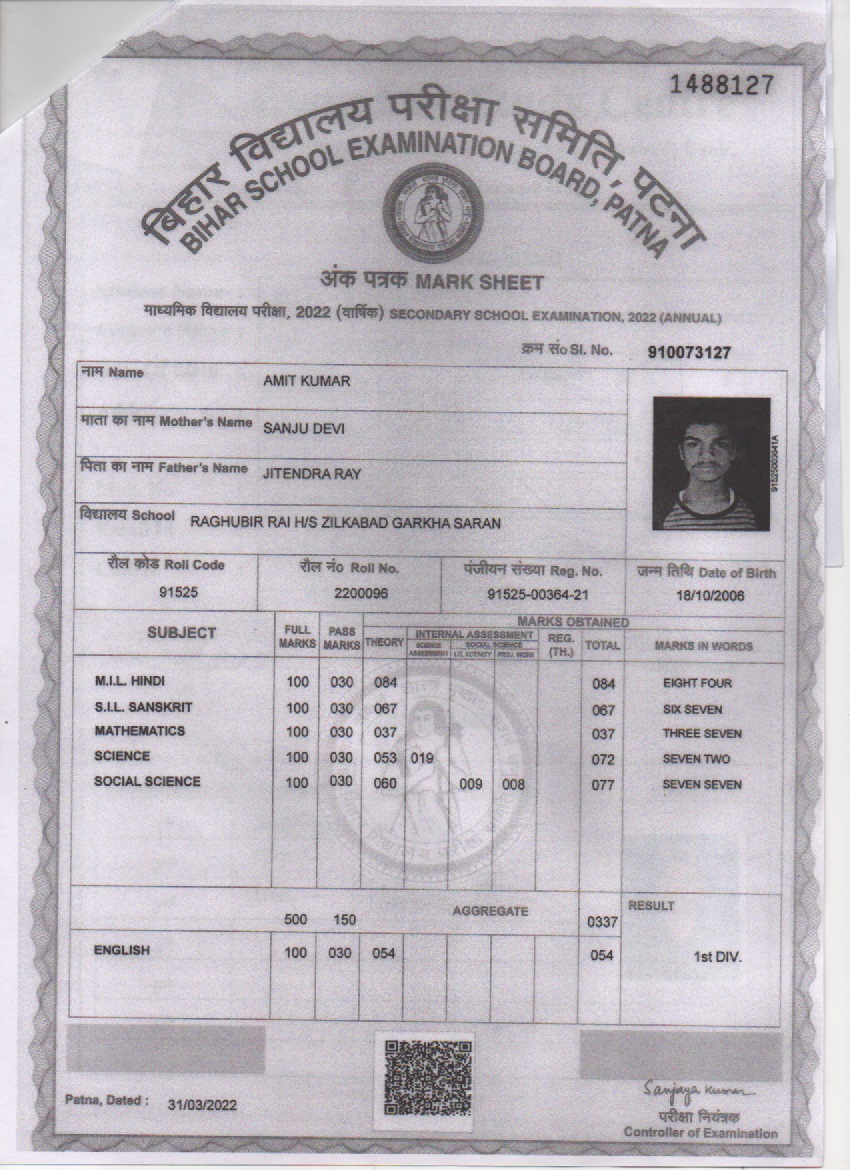 | Exam | Full Marks | Pass Marks | Marks Obtained |