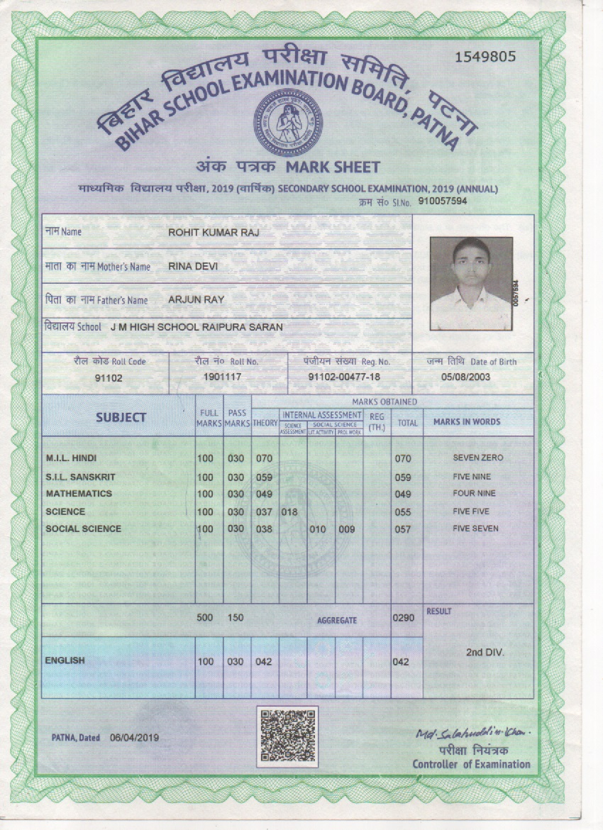 | Exam | Full Marks | Pass Marks | Marks Obtained |