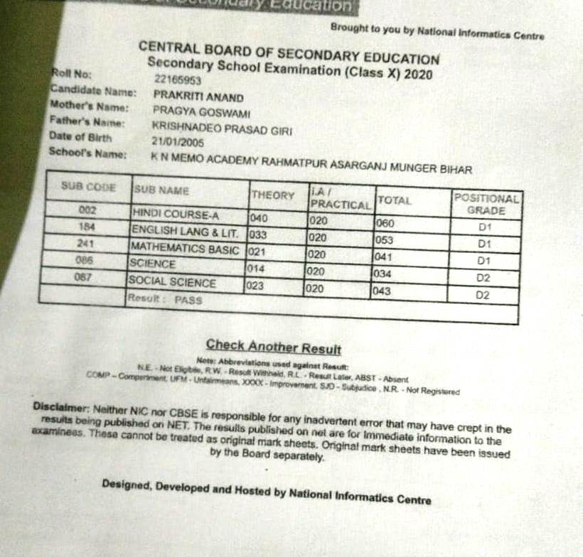 | Exam | Full Marks | Pass Marks | Marks Obtained |