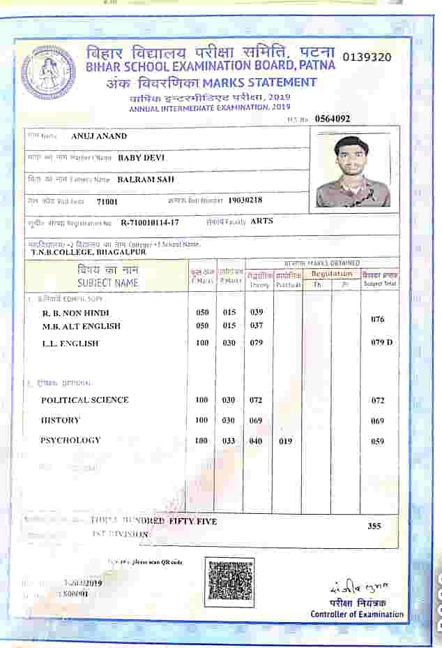 | Exam | Full Marks | Pass Marks | Marks Obtained |