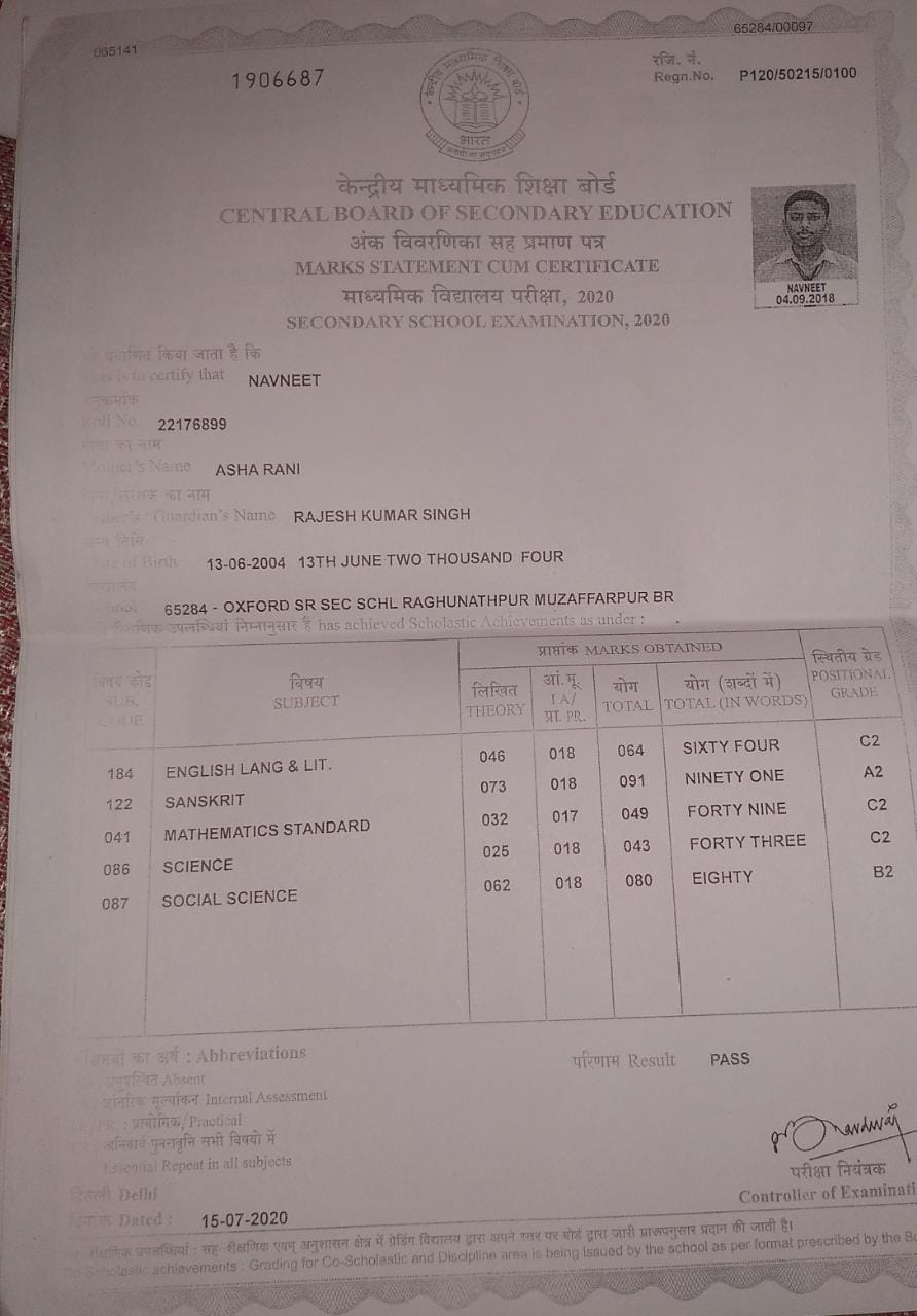 | Exam | Full Marks | Pass Marks | Marks Obtained |