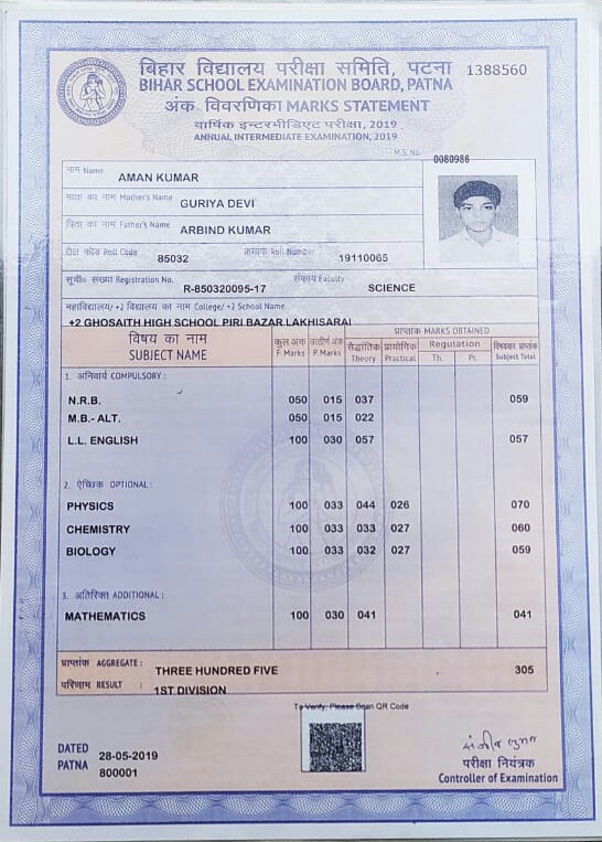 | Exam | Full Marks | Pass Marks | Marks Obtained |