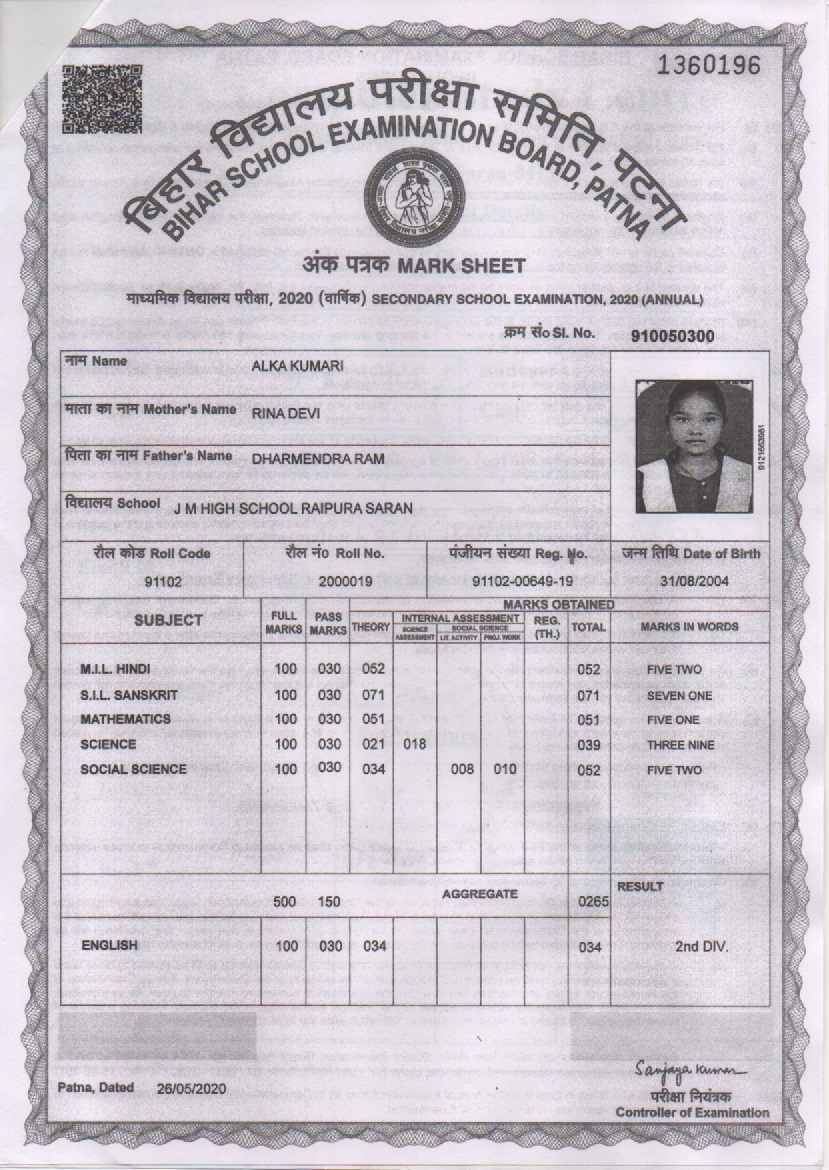 | Exam | Full Marks | Pass Marks | Marks Obtained |