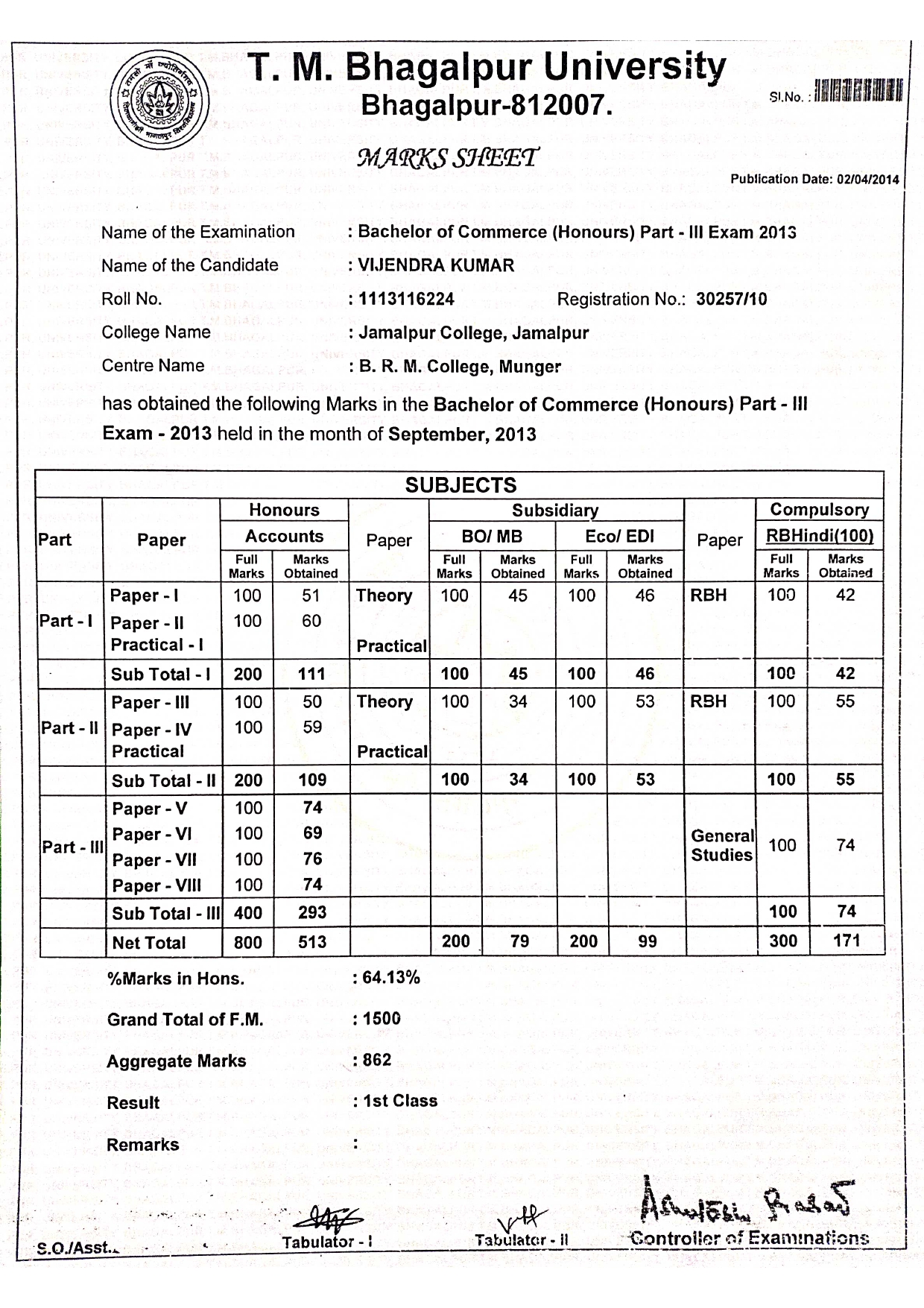 | Exam | Full Marks | Pass Marks | Marks Obtained |