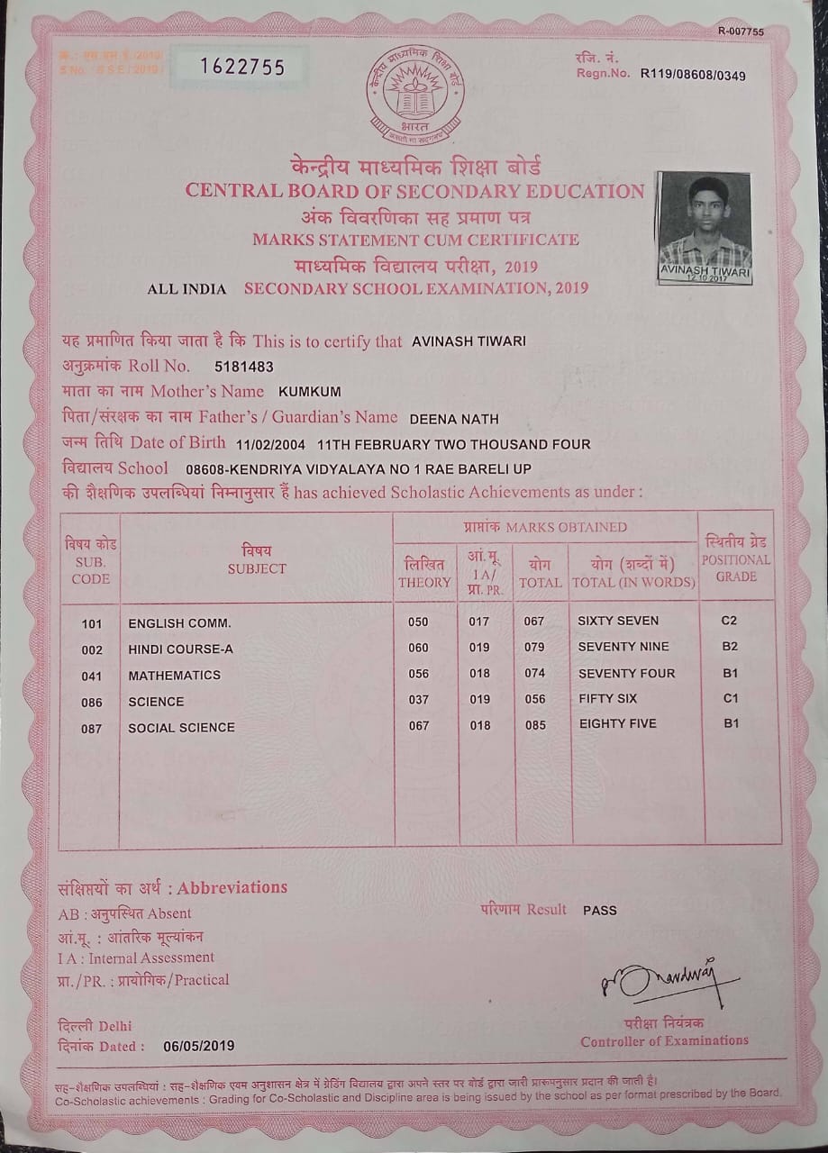 | Exam | Full Marks | Pass Marks | Marks Obtained |