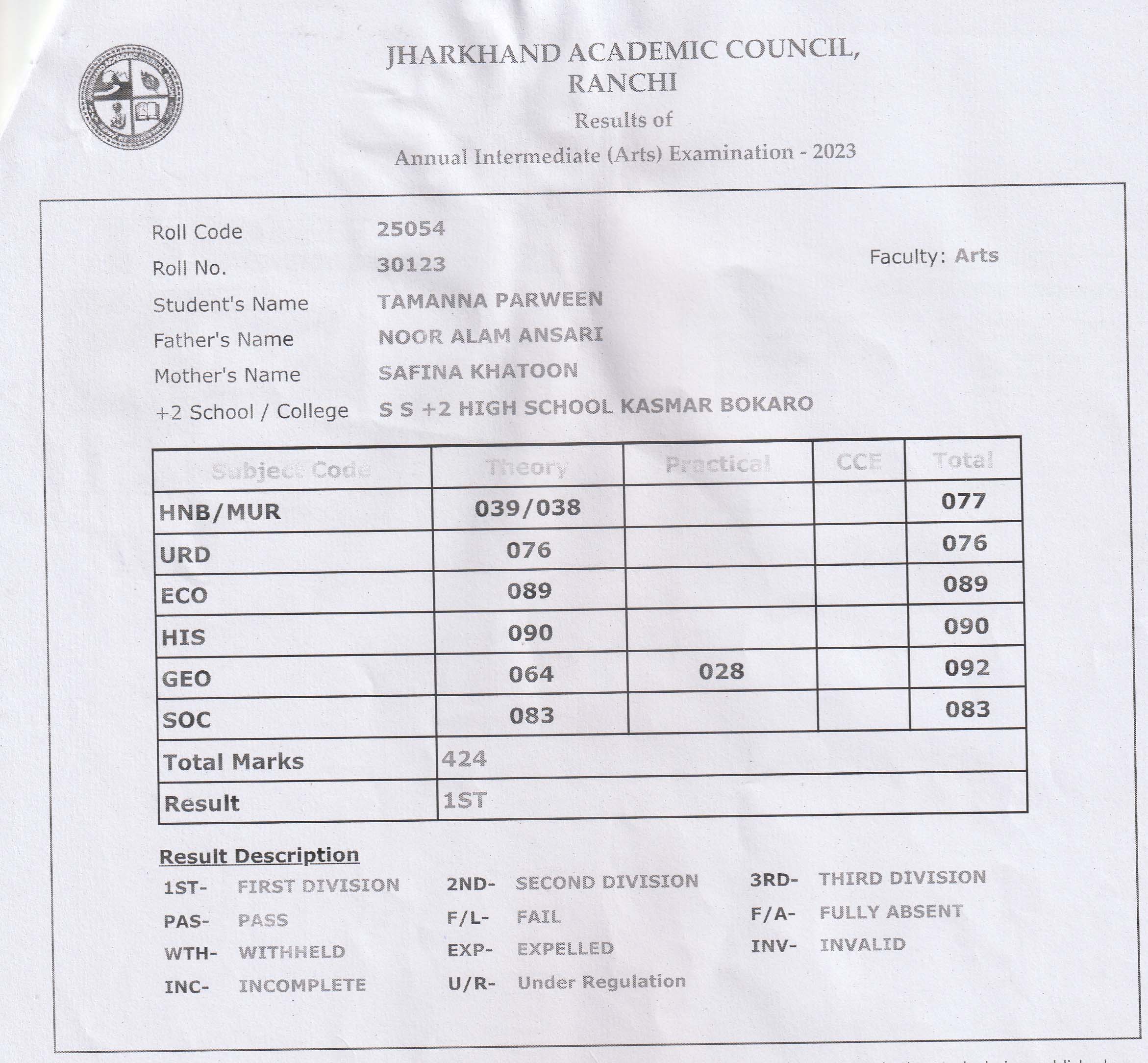 | Exam | Full Marks | Pass Marks | Marks Obtained |
