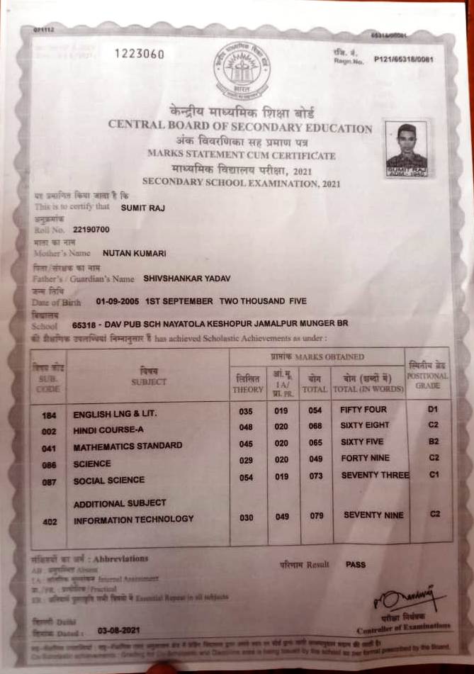 | Exam | Full Marks | Pass Marks | Marks Obtained |
