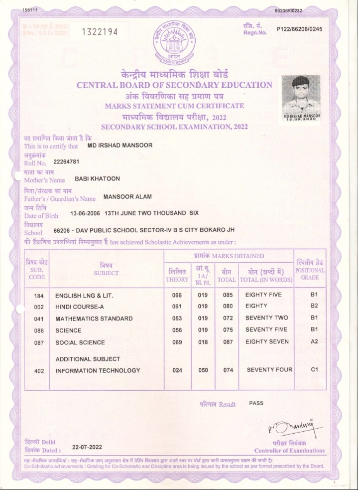 | Exam | Full Marks | Pass Marks | Marks Obtained |