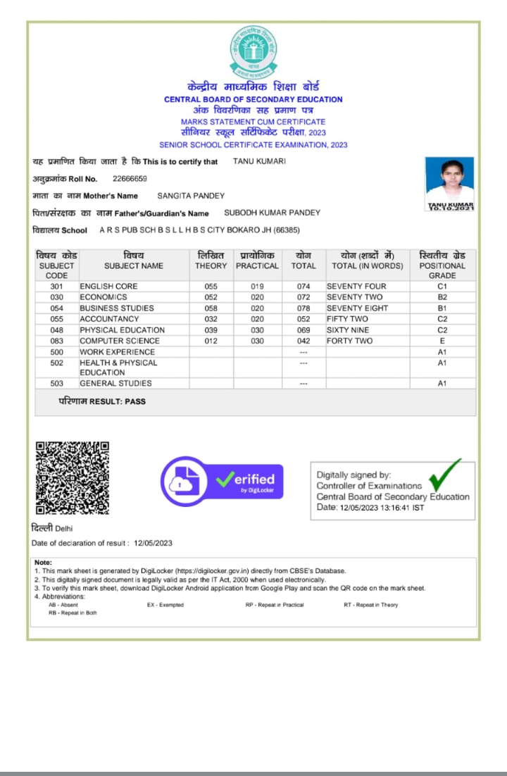 | Exam | Full Marks | Pass Marks | Marks Obtained |