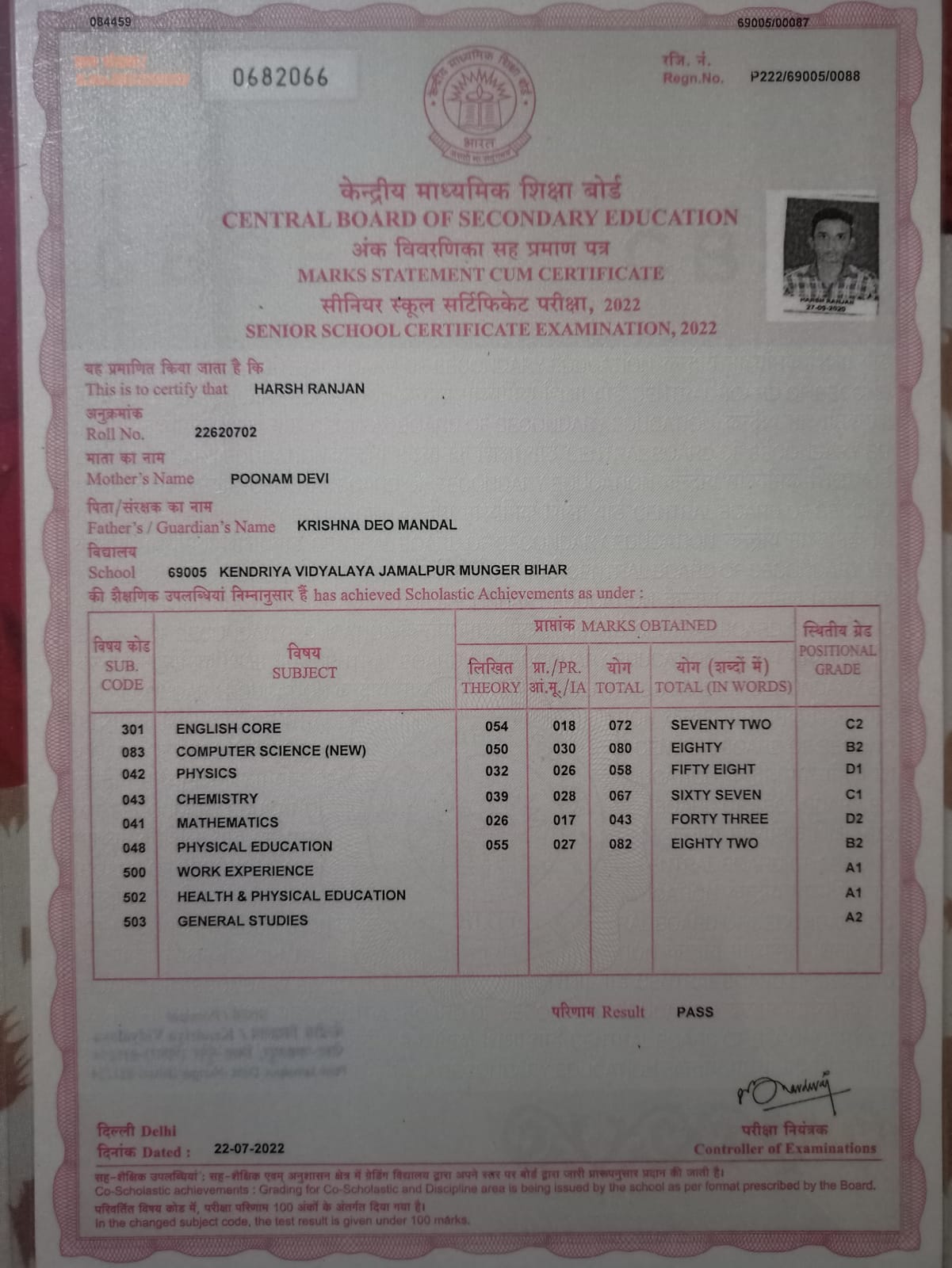 | Exam | Full Marks | Pass Marks | Marks Obtained |