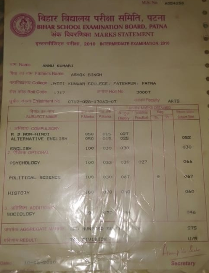 | Exam | Full Marks | Pass Marks | Marks Obtained |