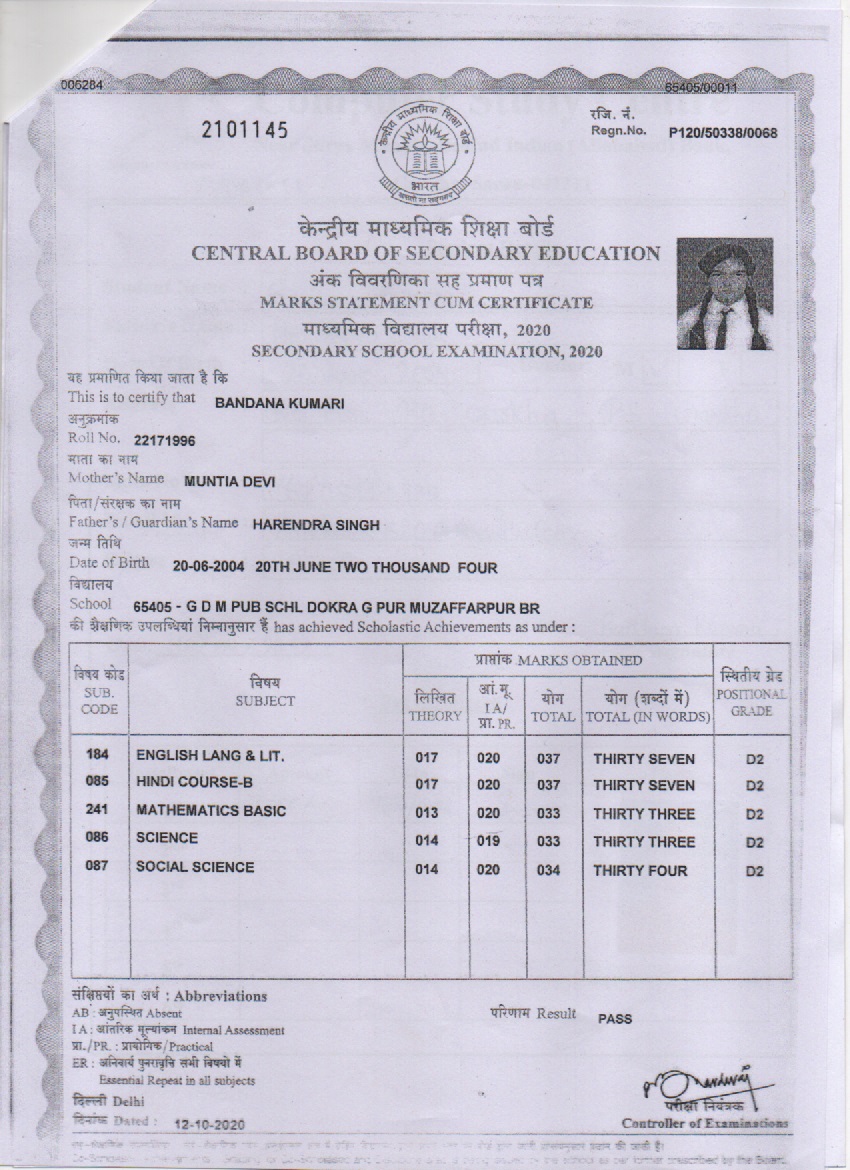 | Exam | Full Marks | Pass Marks | Marks Obtained |