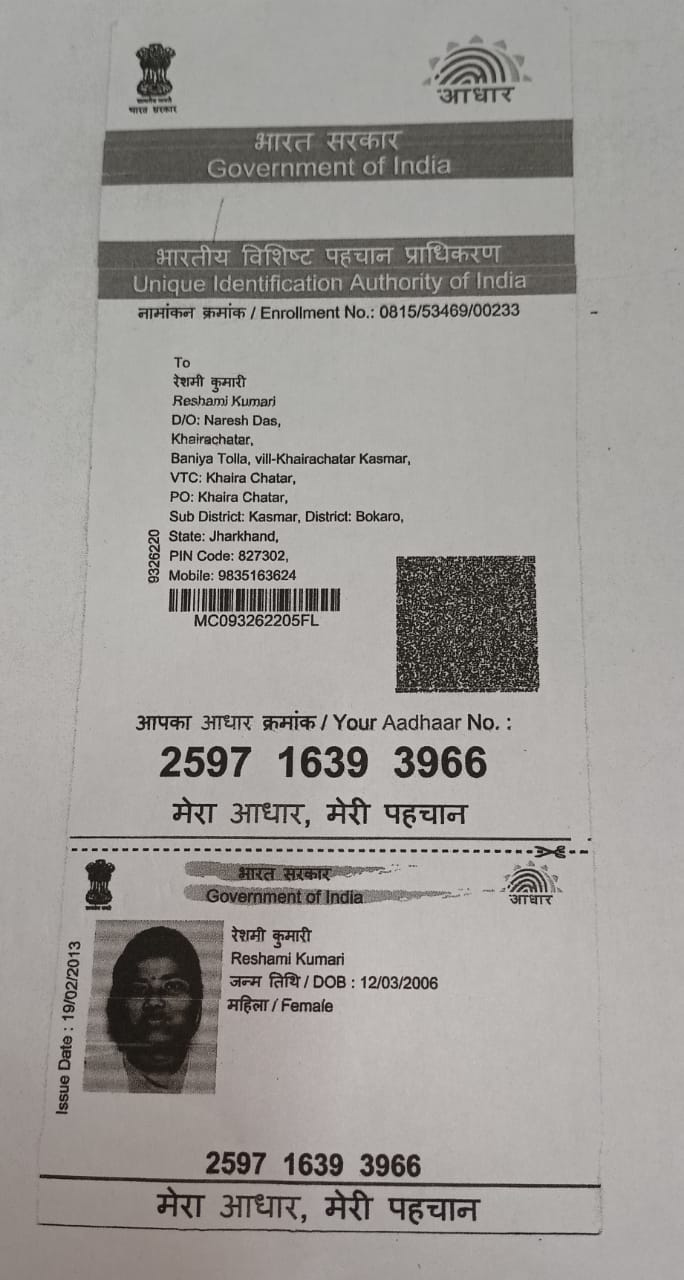 | : | KHAIRACHATAR, NEAR- KHAIRACHATAR POST OFFICE, PS- KASMAR, BOKARO JHARKHAND - 827302, Bokaro | |