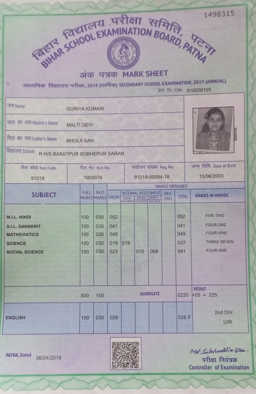 | Exam | Full Marks | Pass Marks | Marks Obtained |