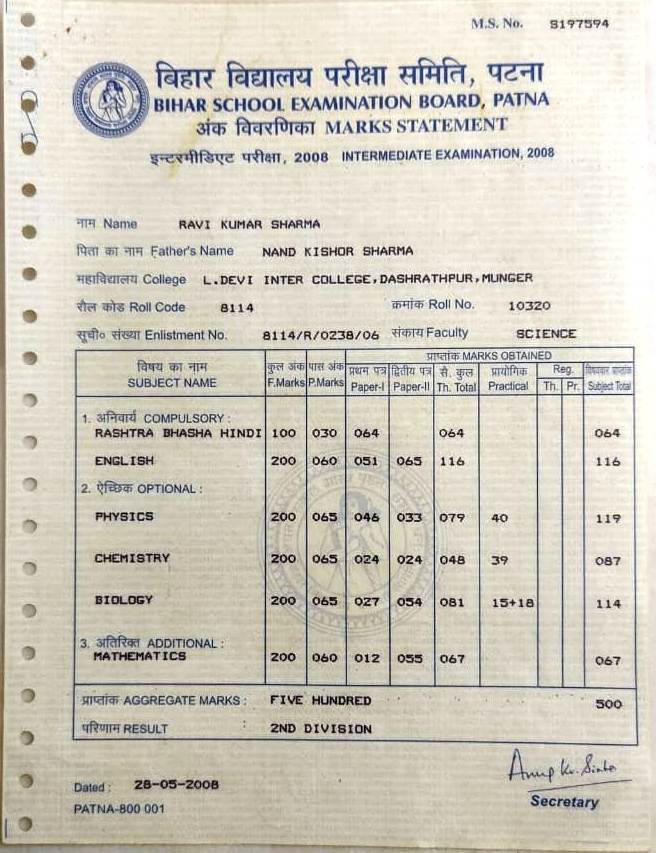 | Exam | Full Marks | Pass Marks | Marks Obtained |
