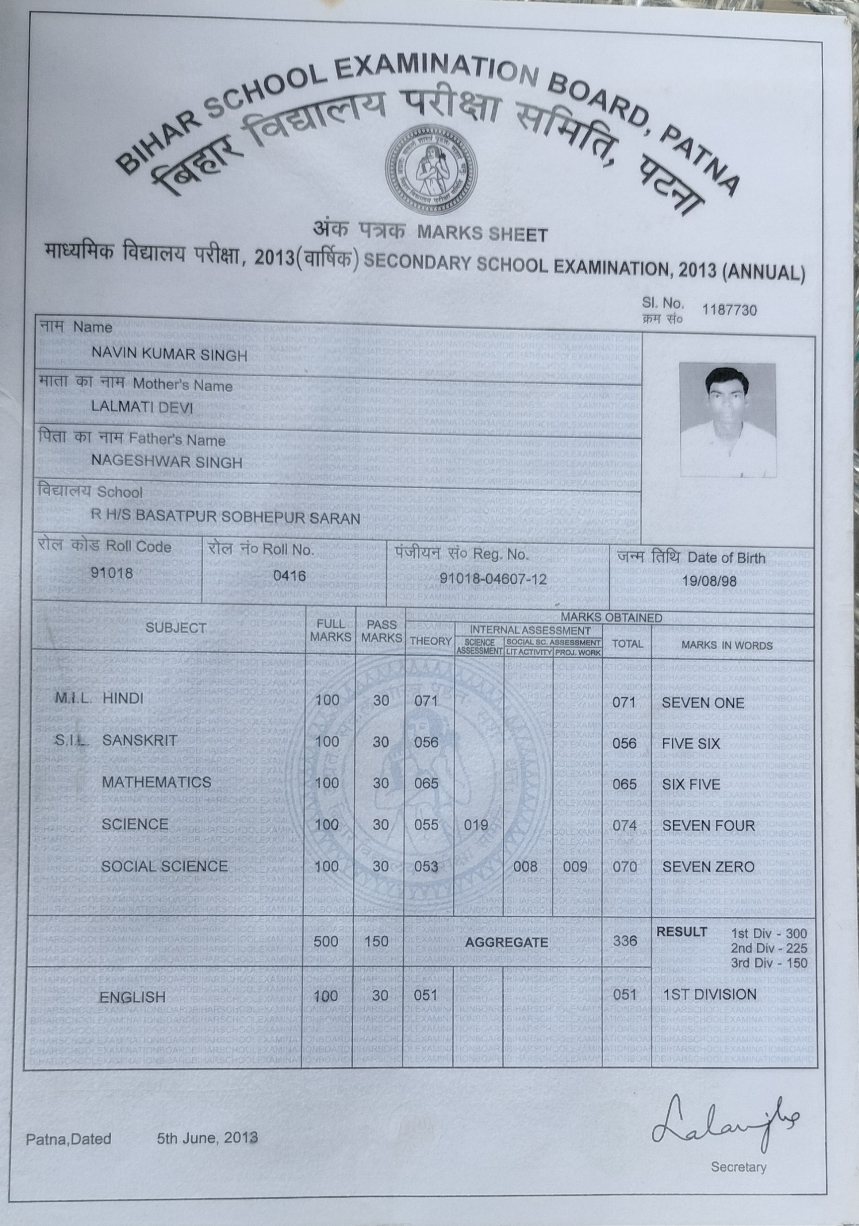 | Exam | Full Marks | Pass Marks | Marks Obtained |