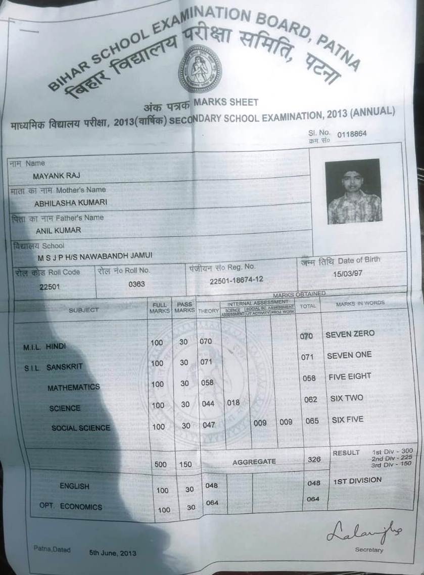 | Exam | Full Marks | Pass Marks | Marks Obtained |