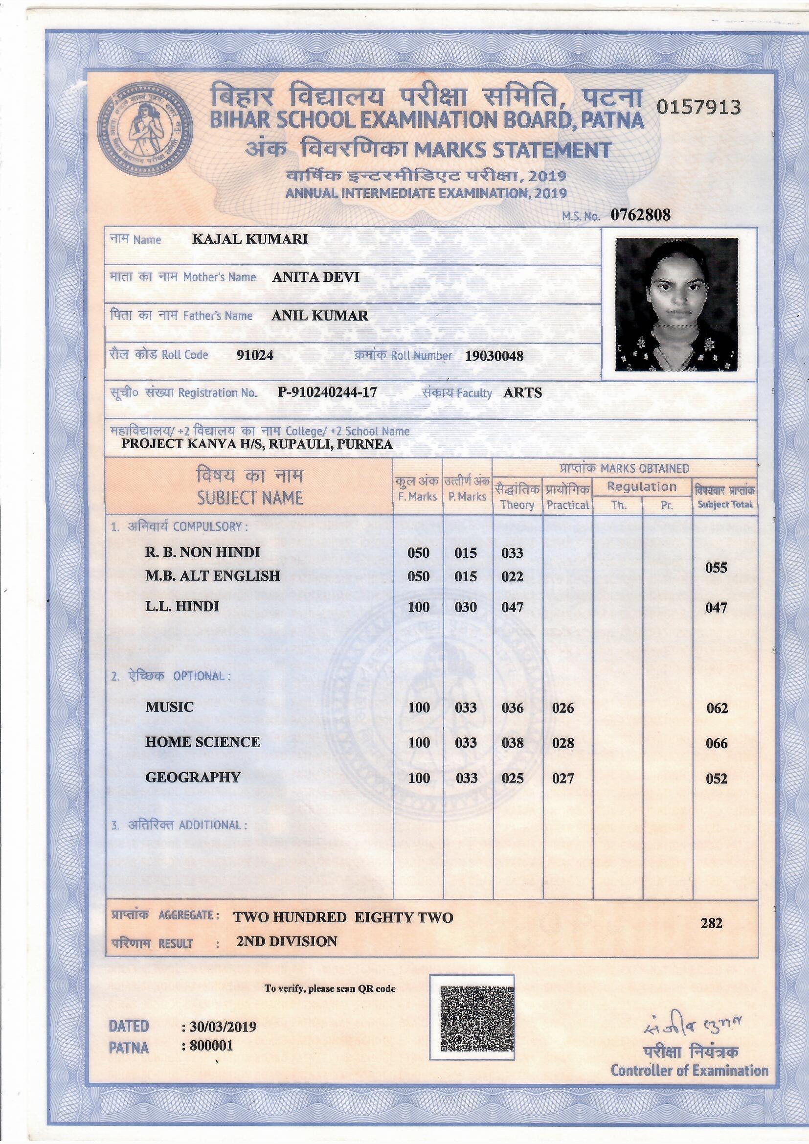 | Exam | Full Marks | Pass Marks | Marks Obtained |