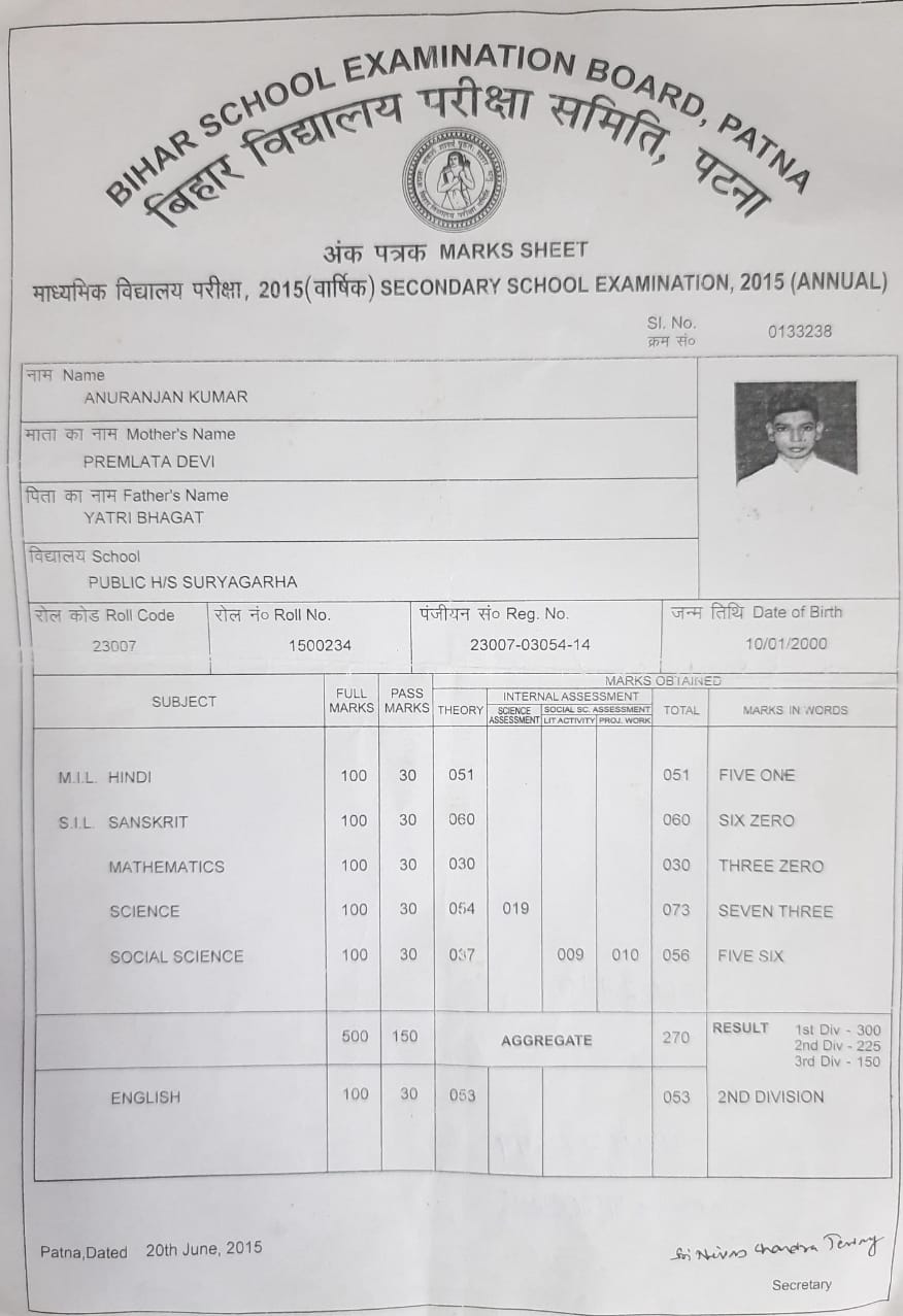 | Exam | Full Marks | Pass Marks | Marks Obtained |