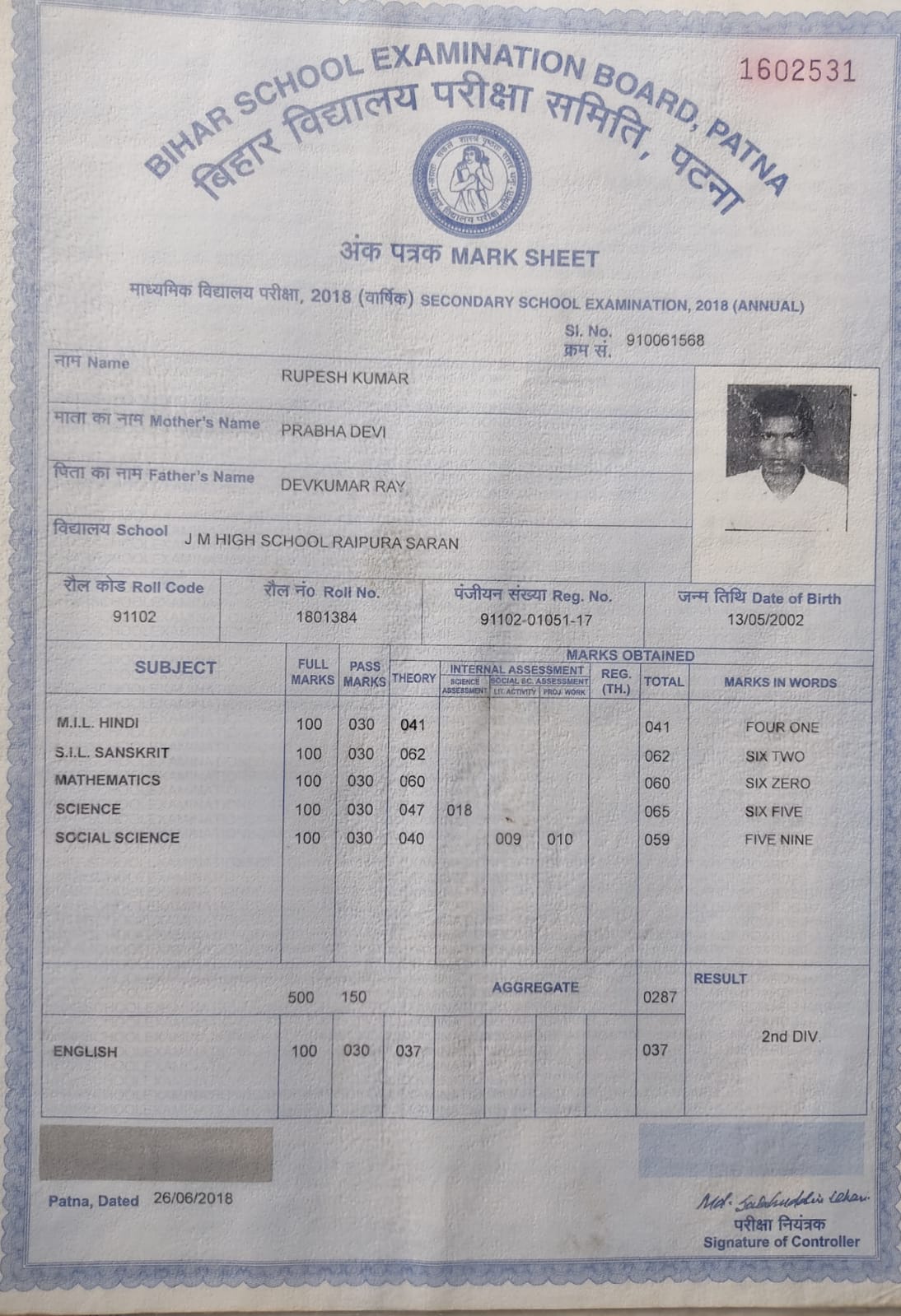 | Exam | Full Marks | Pass Marks | Marks Obtained |