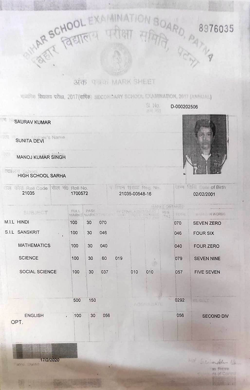 | : | Matric | |