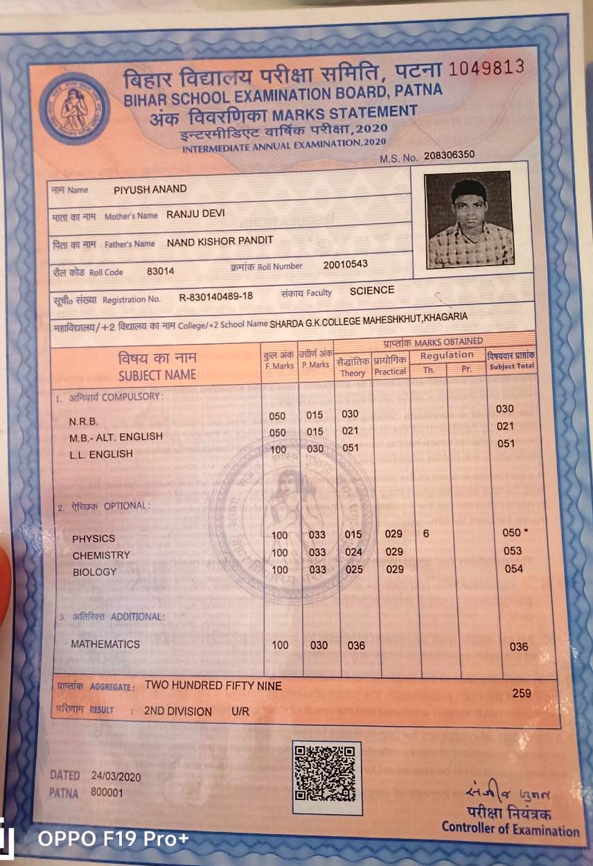| Exam | Full Marks | Pass Marks | Marks Obtained |