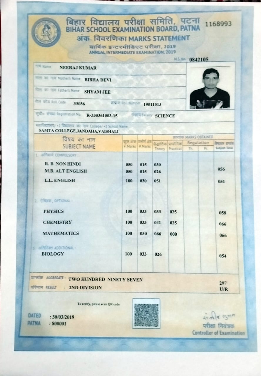 | Exam | Full Marks | Pass Marks | Marks Obtained |