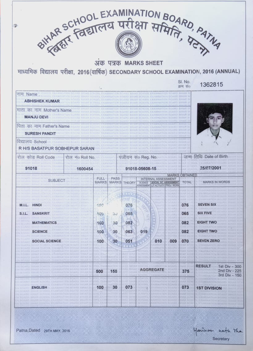 | Exam | Full Marks | Pass Marks | Marks Obtained |