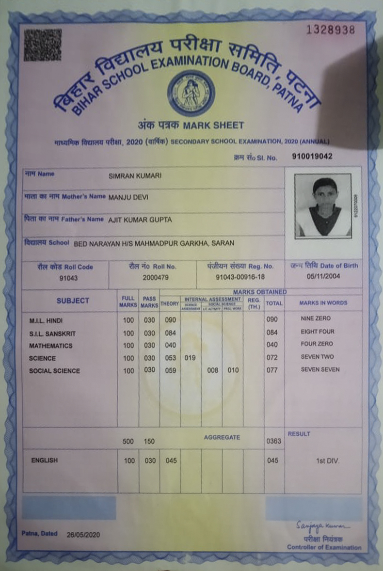 | Exam | Full Marks | Pass Marks | Marks Obtained |