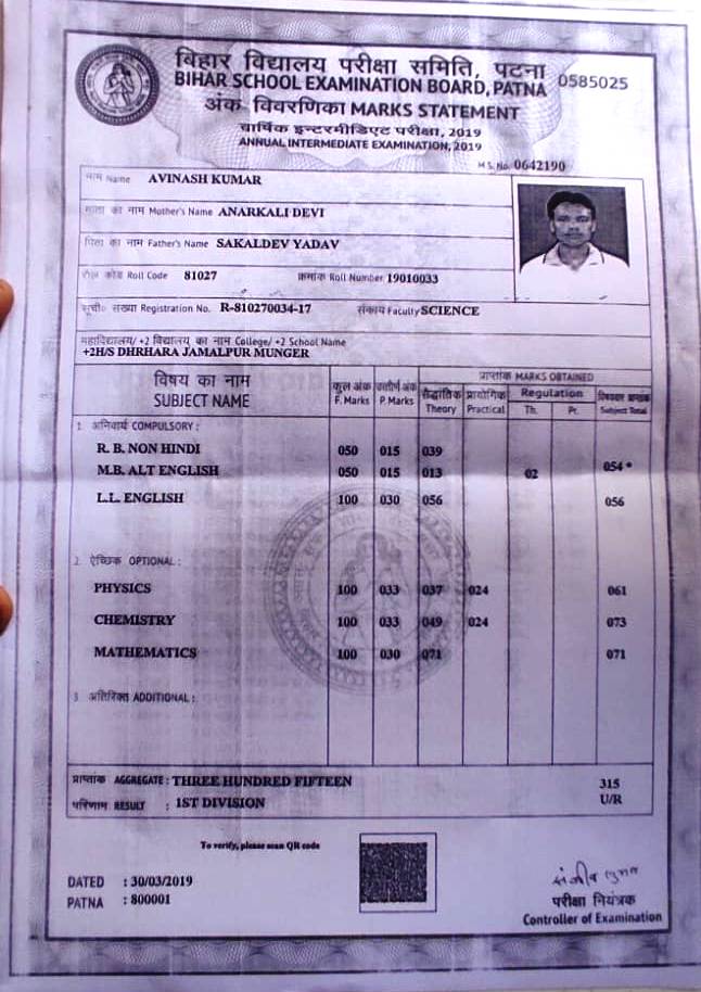 | Exam | Full Marks | Pass Marks | Marks Obtained |