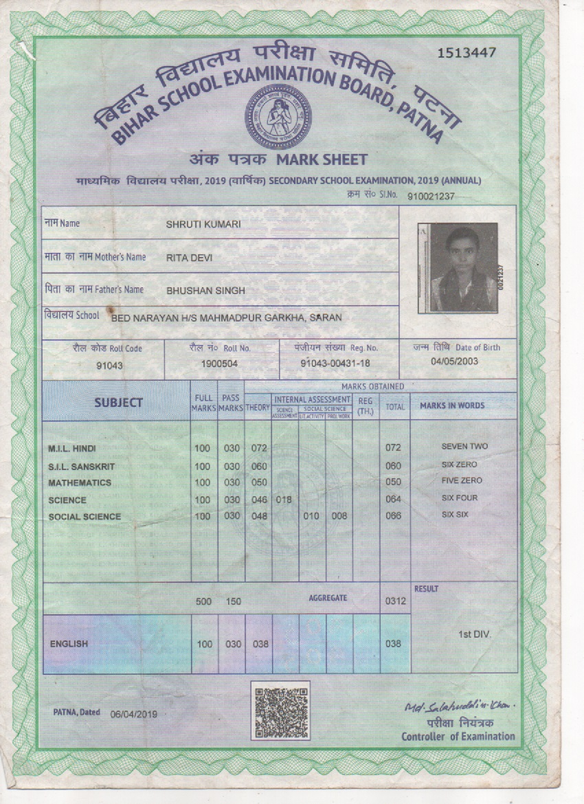 | Exam | Full Marks | Pass Marks | Marks Obtained |