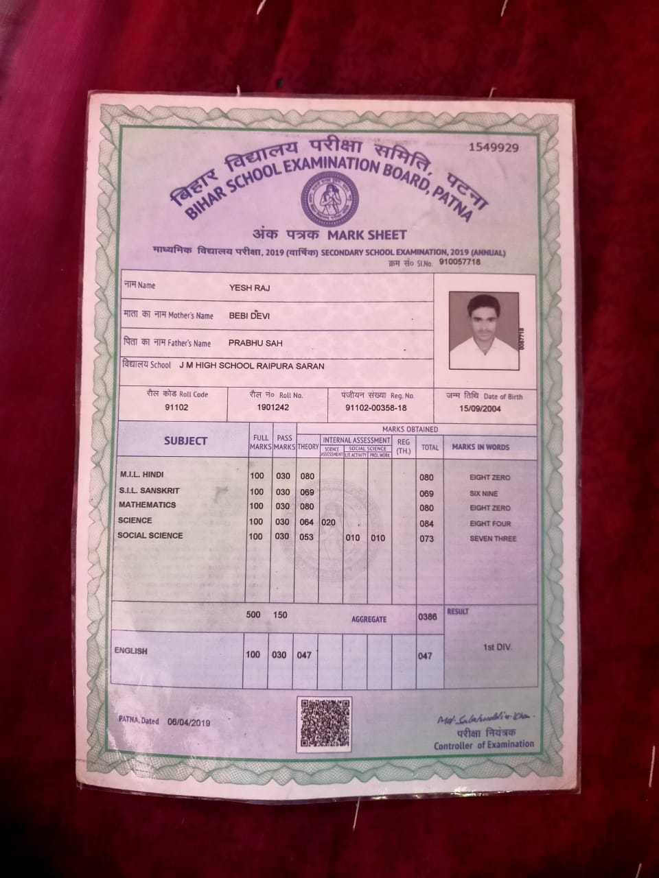 | Exam | Full Marks | Pass Marks | Marks Obtained |