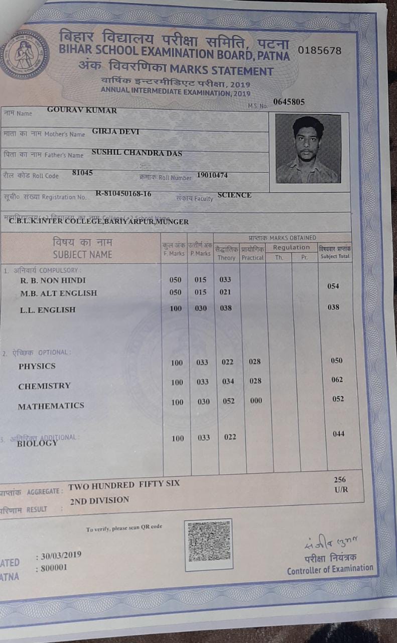 | Exam | Full Marks | Pass Marks | Marks Obtained |