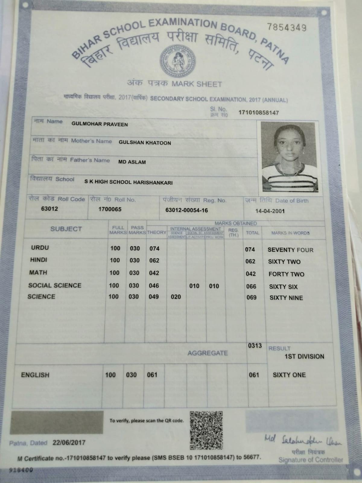 | Exam | Full Marks | Pass Marks | Marks Obtained |