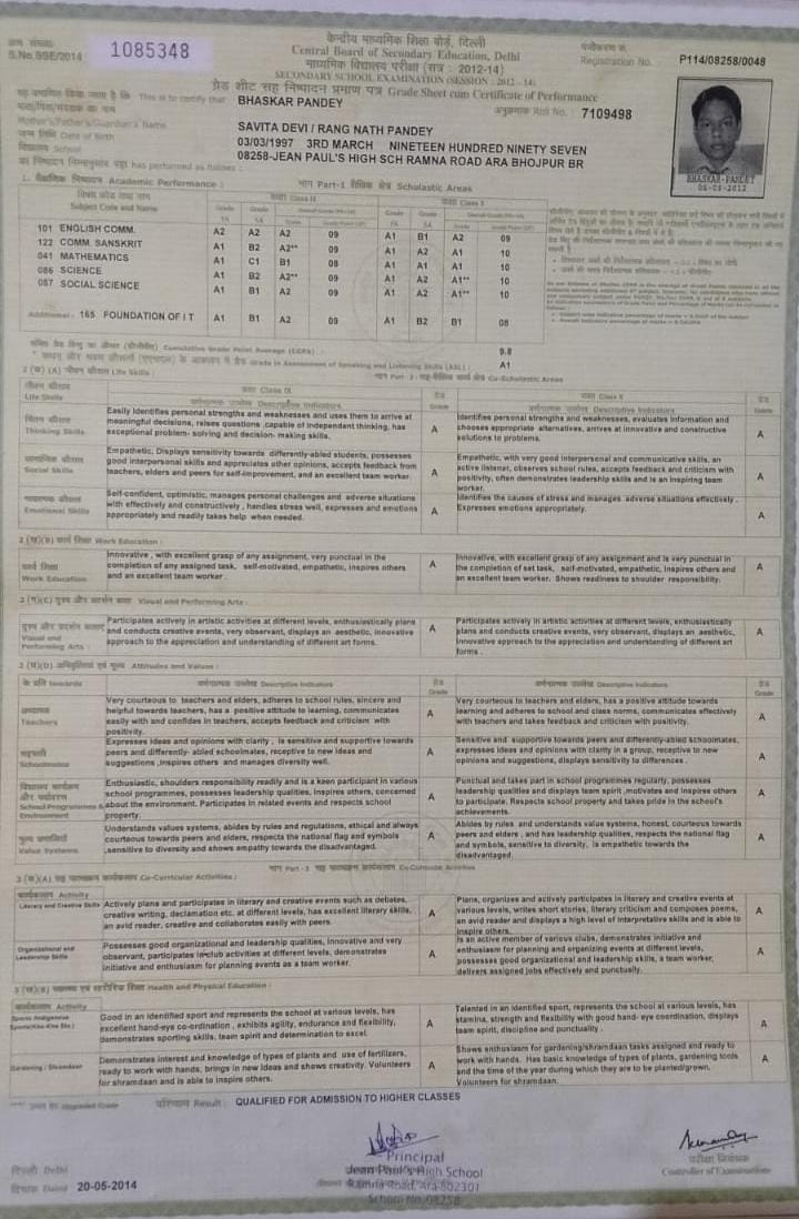 | Exam | Full Marks | Pass Marks | Marks Obtained |