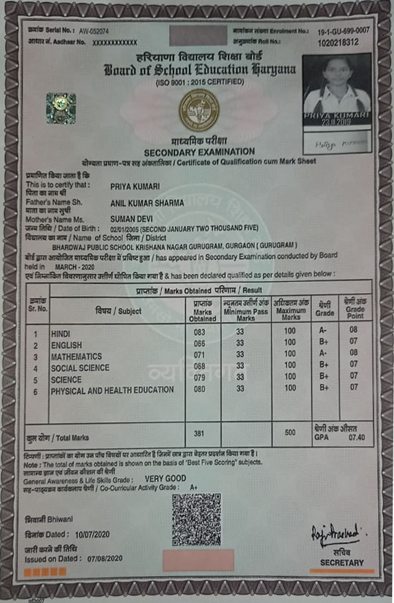 | Exam | Full Marks | Pass Marks | Marks Obtained |