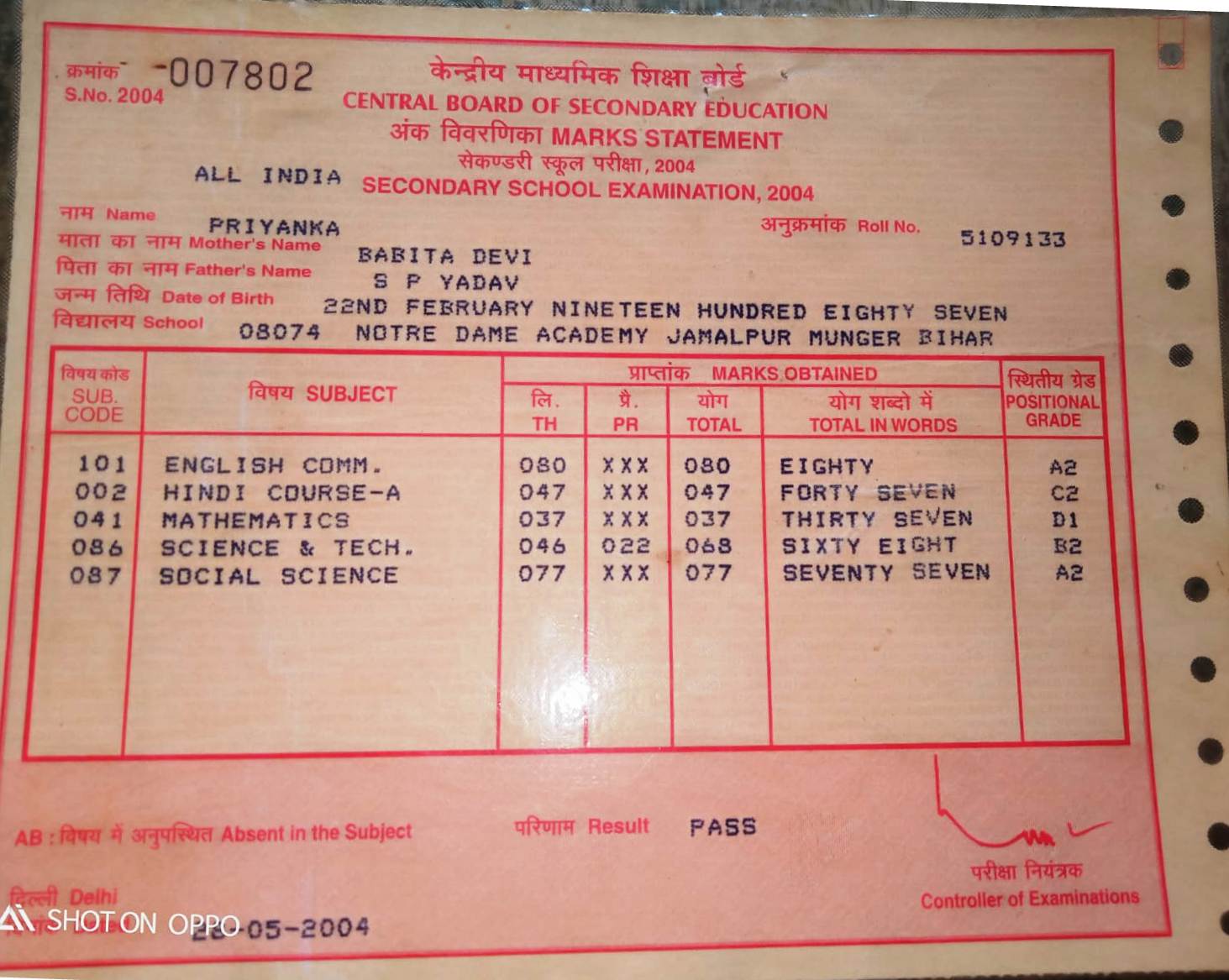 | Exam | Full Marks | Pass Marks | Marks Obtained |