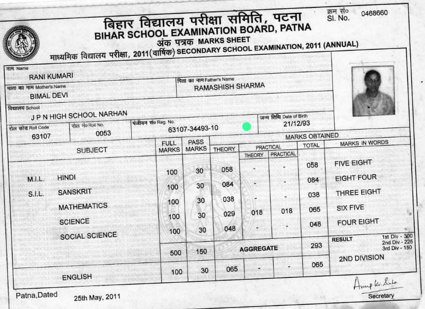 | Exam | Full Marks | Pass Marks | Marks Obtained |