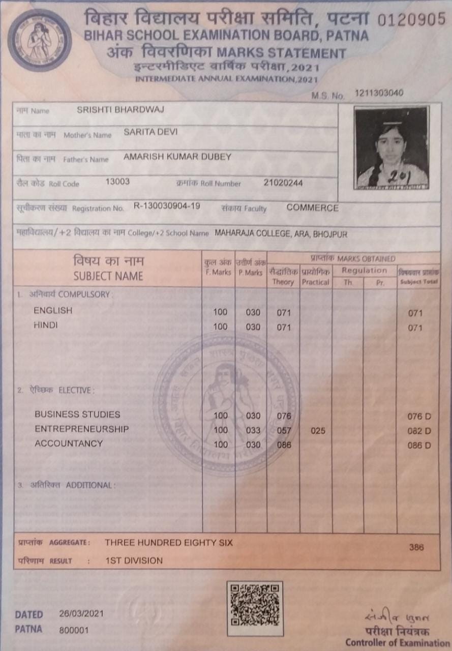 | Exam | Full Marks | Pass Marks | Marks Obtained |