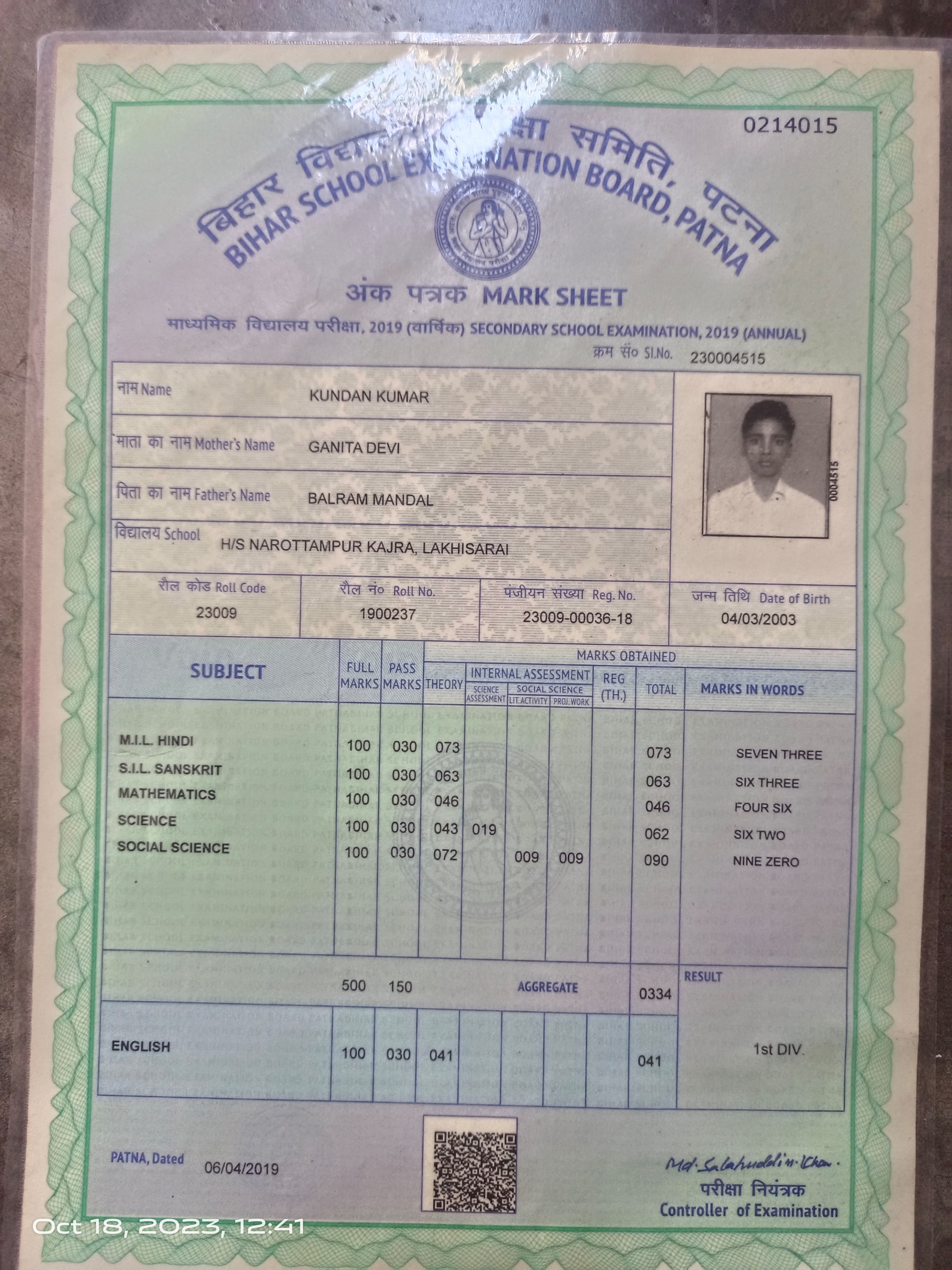 | Exam | Full Marks | Pass Marks | Marks Obtained |