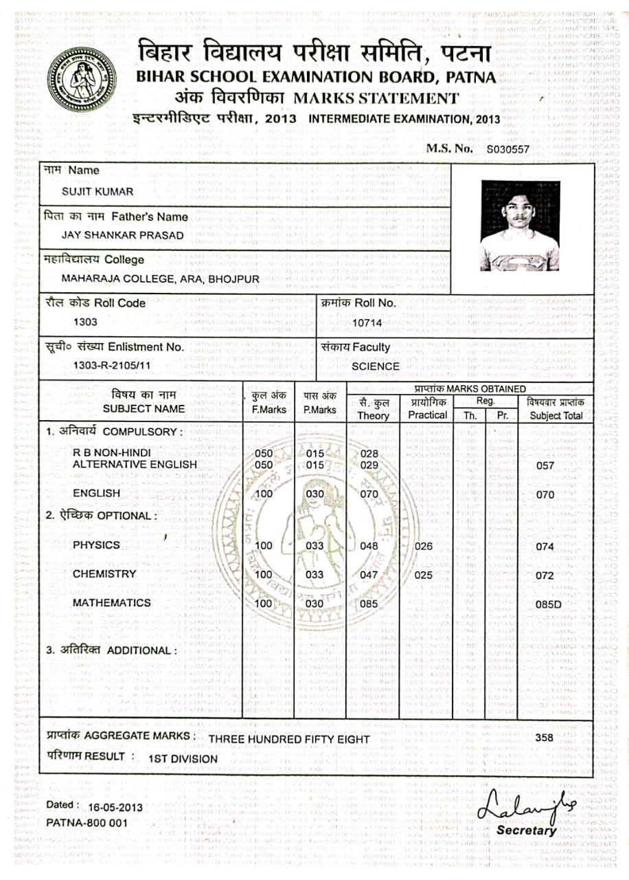 | Exam | Full Marks | Pass Marks | Marks Obtained |