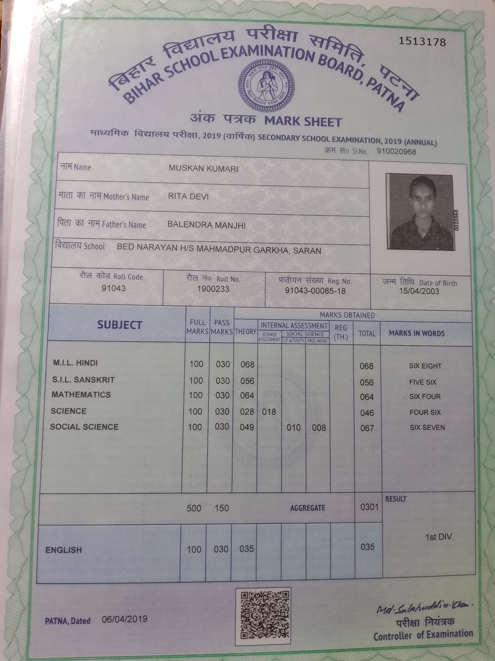| Exam | Full Marks | Pass Marks | Marks Obtained |