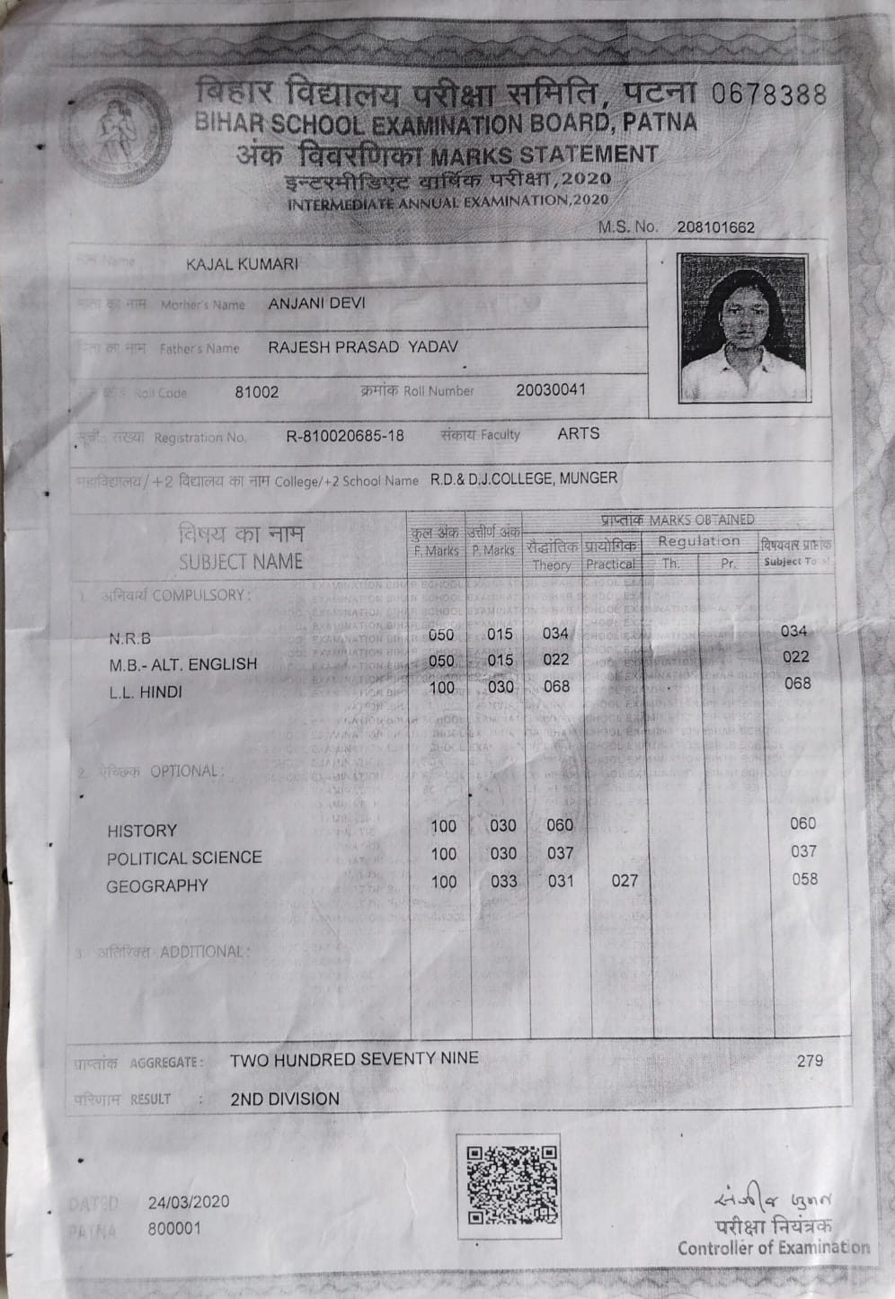 | Exam | Full Marks | Pass Marks | Marks Obtained |
