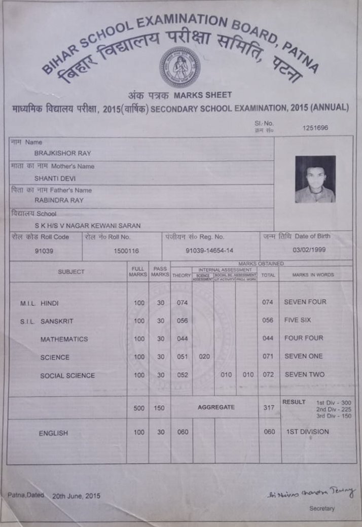 | Exam | Full Marks | Pass Marks | Marks Obtained |