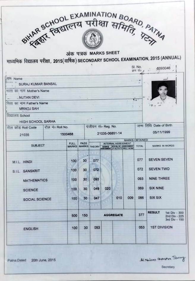 | Exam | Full Marks | Pass Marks | Marks Obtained |
