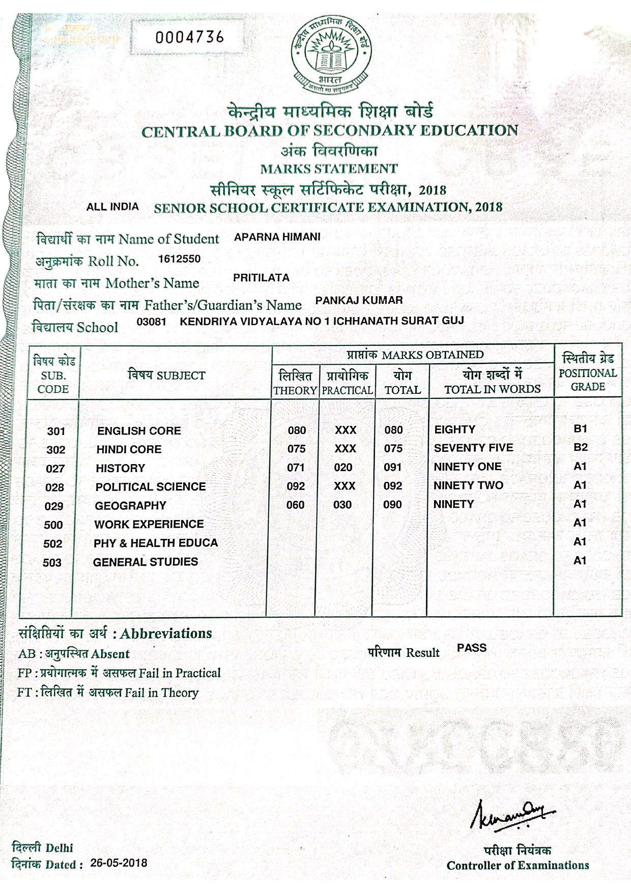 | Exam | Full Marks | Pass Marks | Marks Obtained |