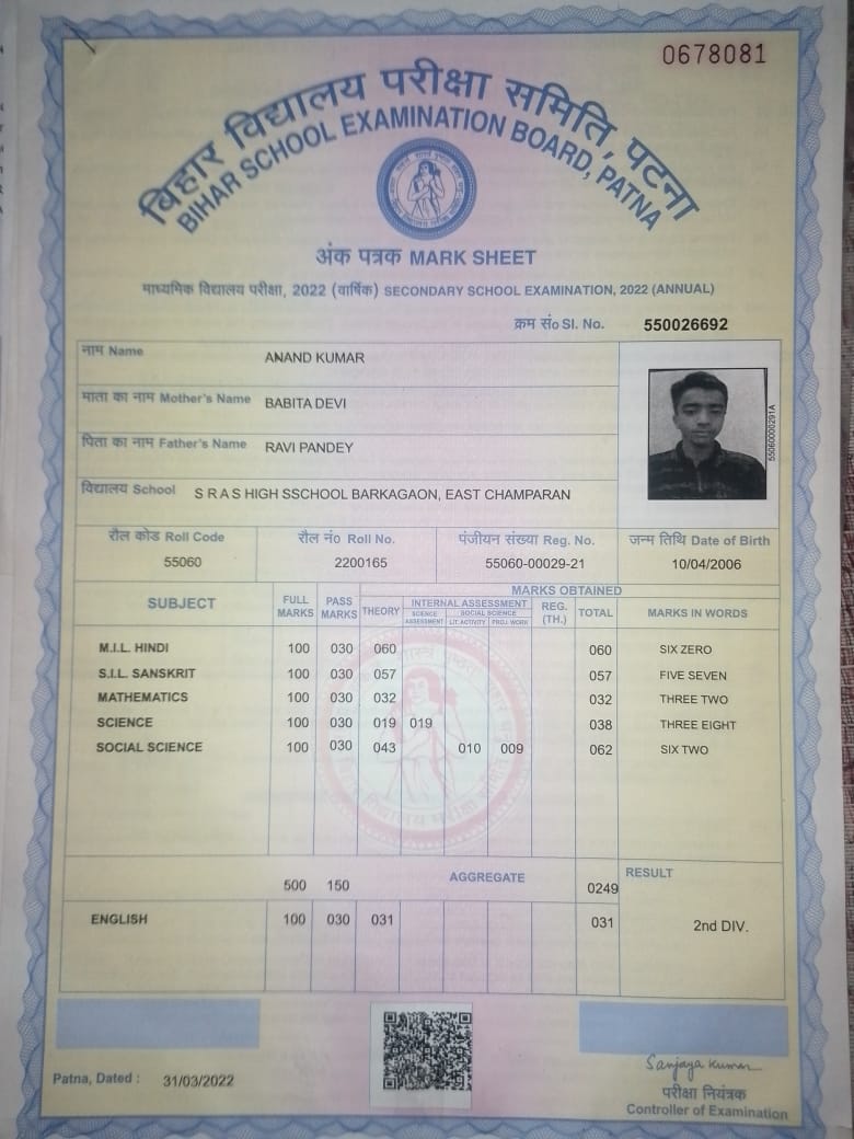 | Exam | Full Marks | Pass Marks | Marks Obtained |